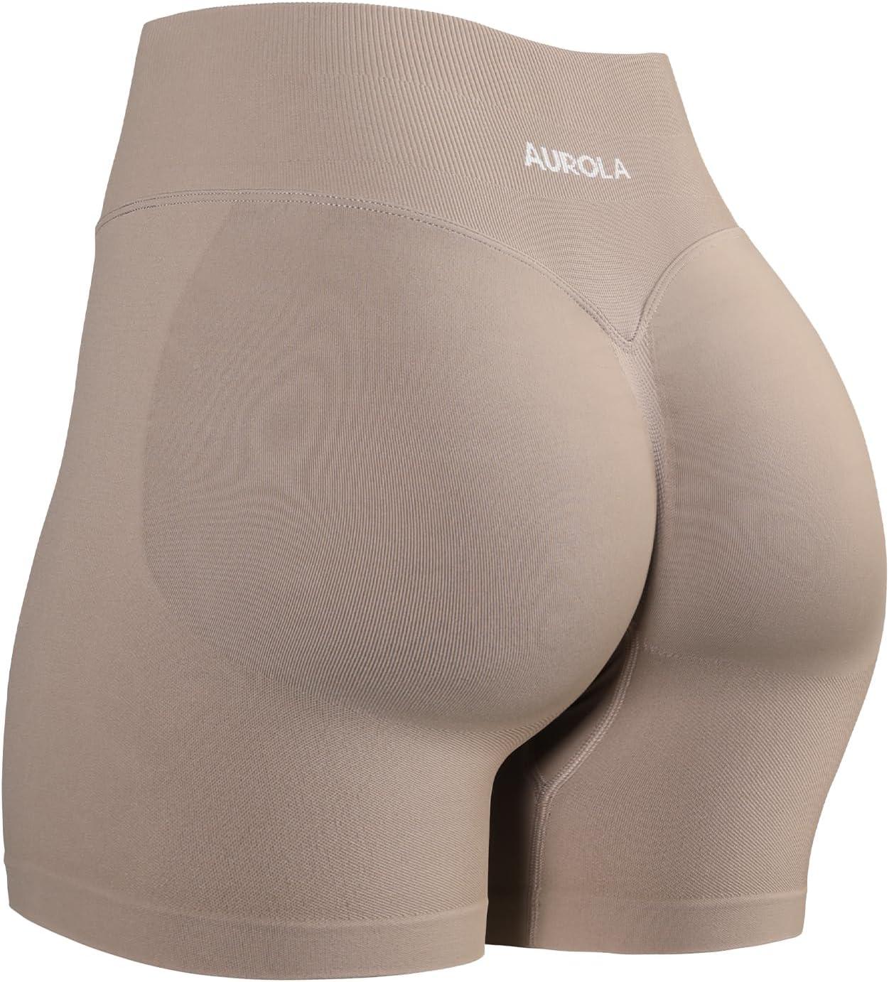 AUROLA Influence Workout Shorts for Women,2.5 3.5 4.5 5.5 6.5 No Roll Up Squat Proof Scrunch Seamless Compression Gym Short(Natural)