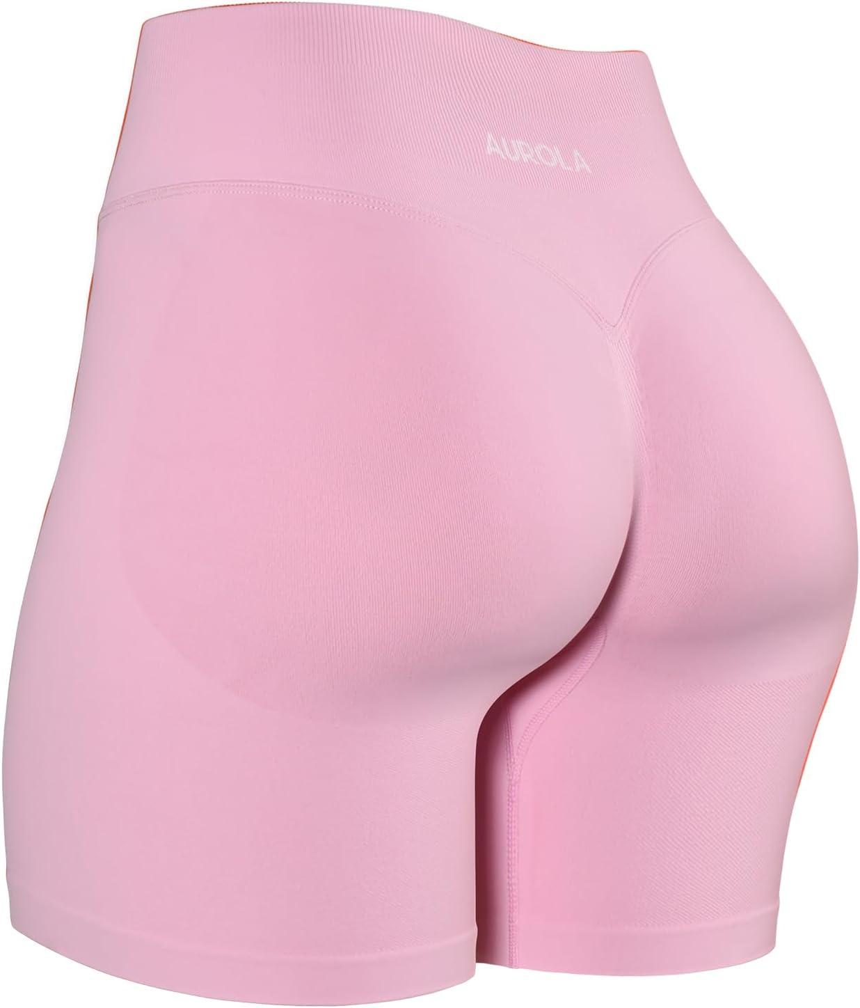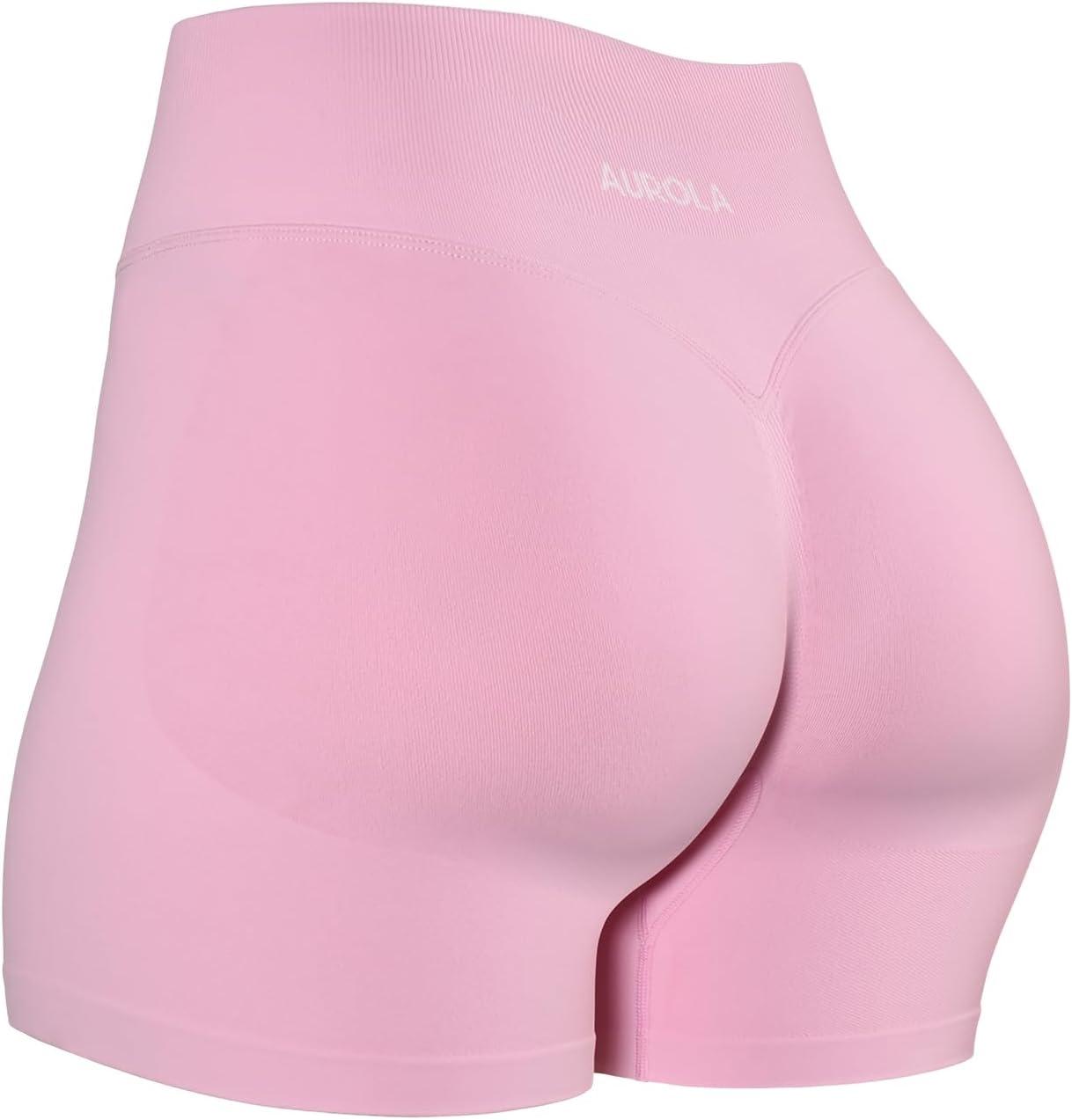 AUROLA Influence Workout Shorts for Women,2.5 3.5 4.5 5.5 6.5 No Roll Up Squat Proof Scrunch Seamless Compression Gym Short(Sweet Pink)