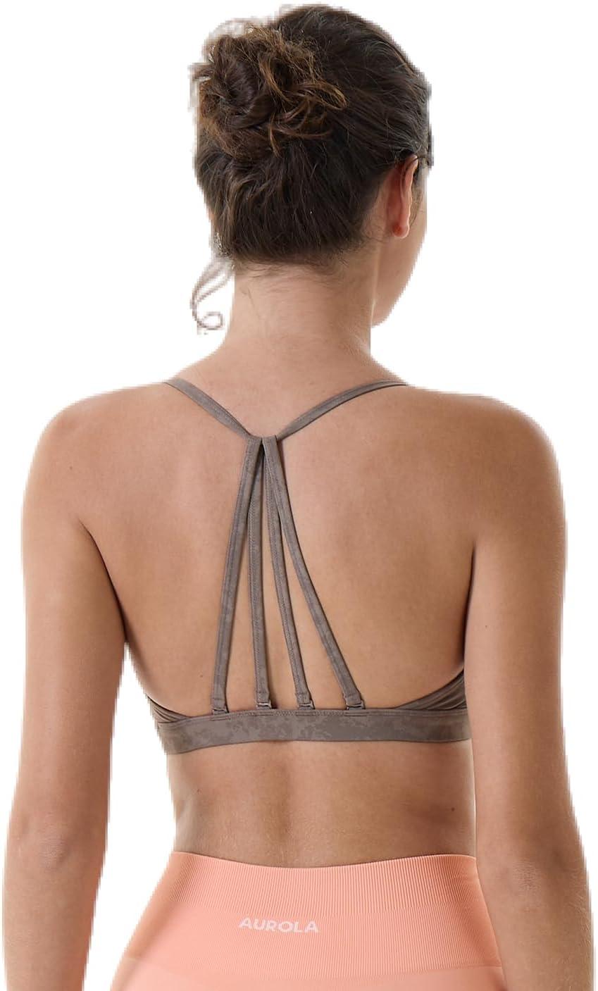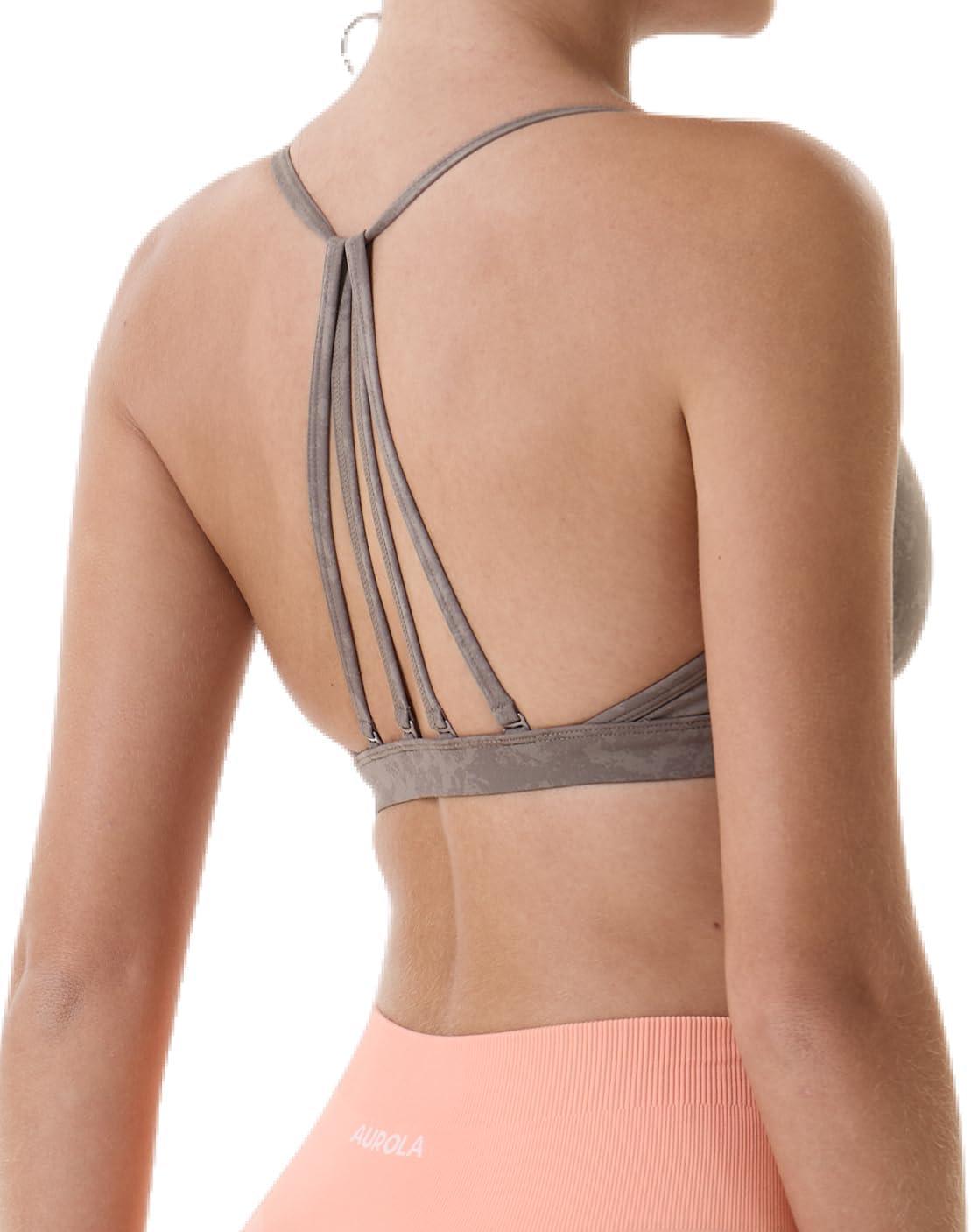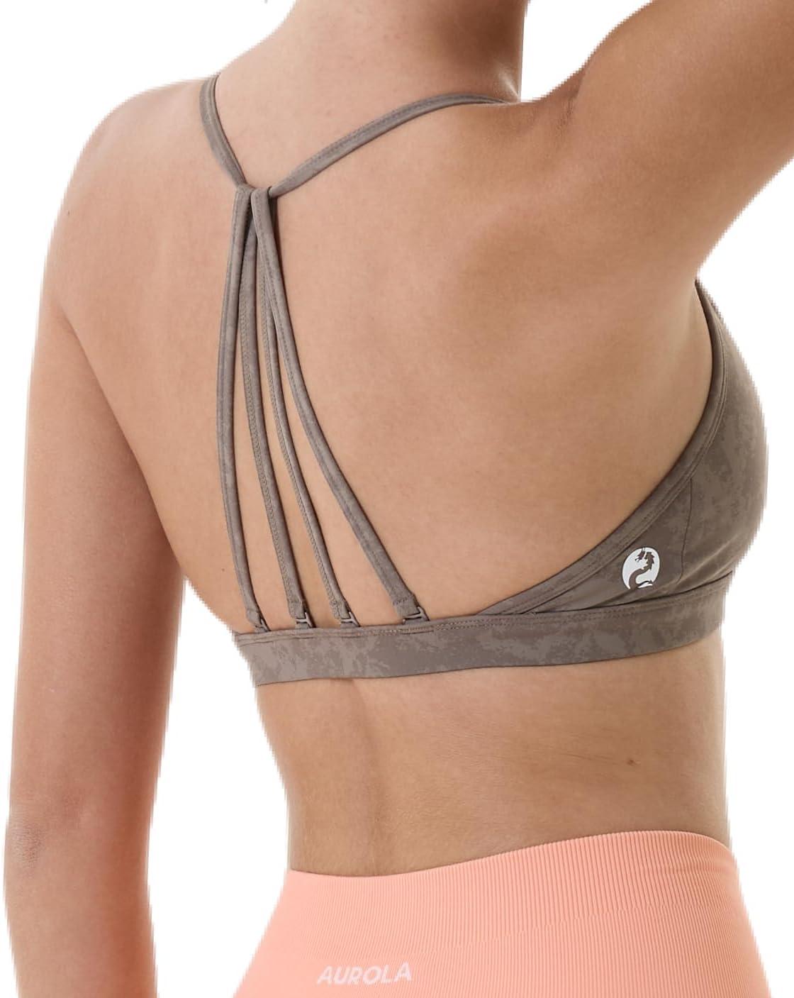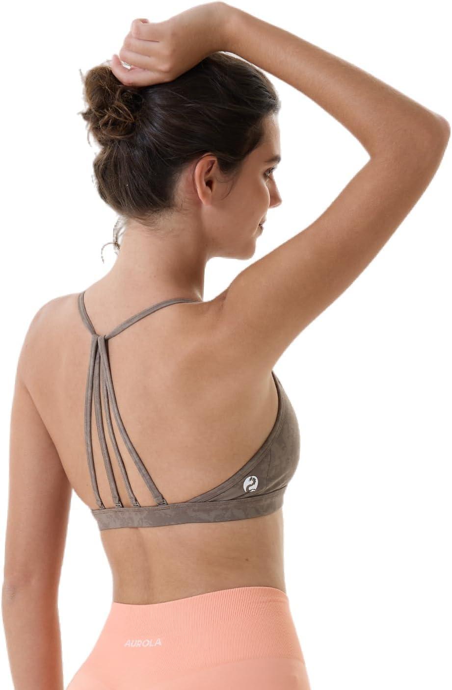 AUROLA Mercury Workout Sports Bras Women Athletic Removable Padded Backless Strapy Minimal Crop Top(Floral-coffee)