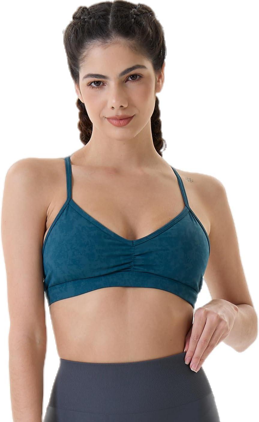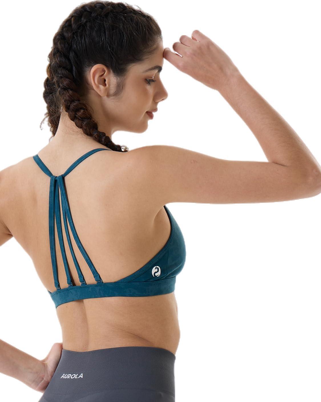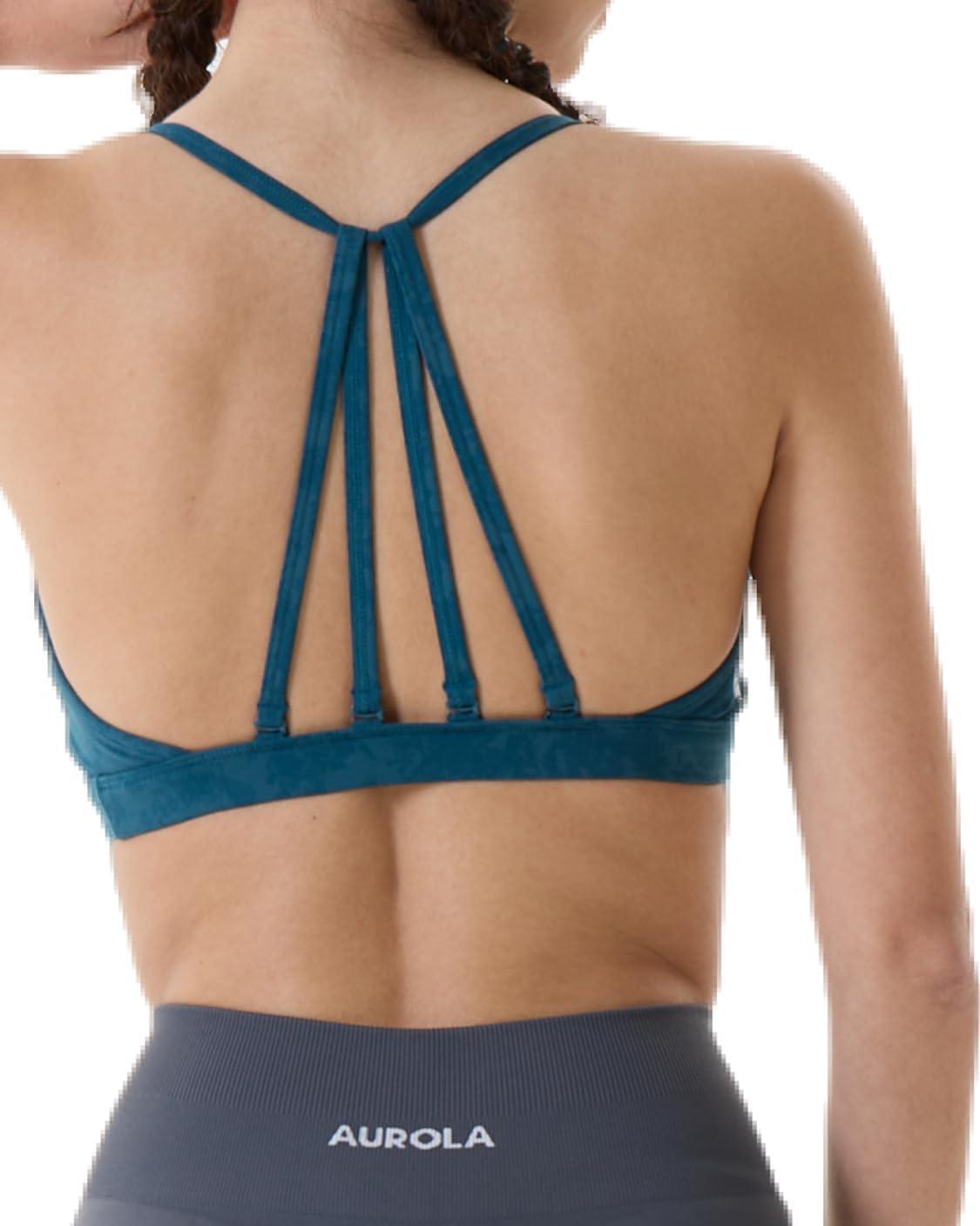 AUROLA Mercury Workout Sports Bras Women Athletic Removable Padded Backless Strapy Minimal Crop Top(Floral-deep Teal)