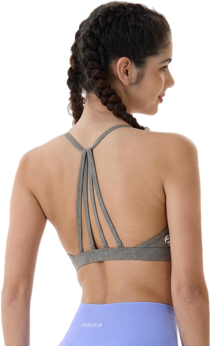 AUROLA Mercury Workout Sports Bras Women Athletic Removable Padded Backless Strapy Minimal Crop Top(Floral-khaki)