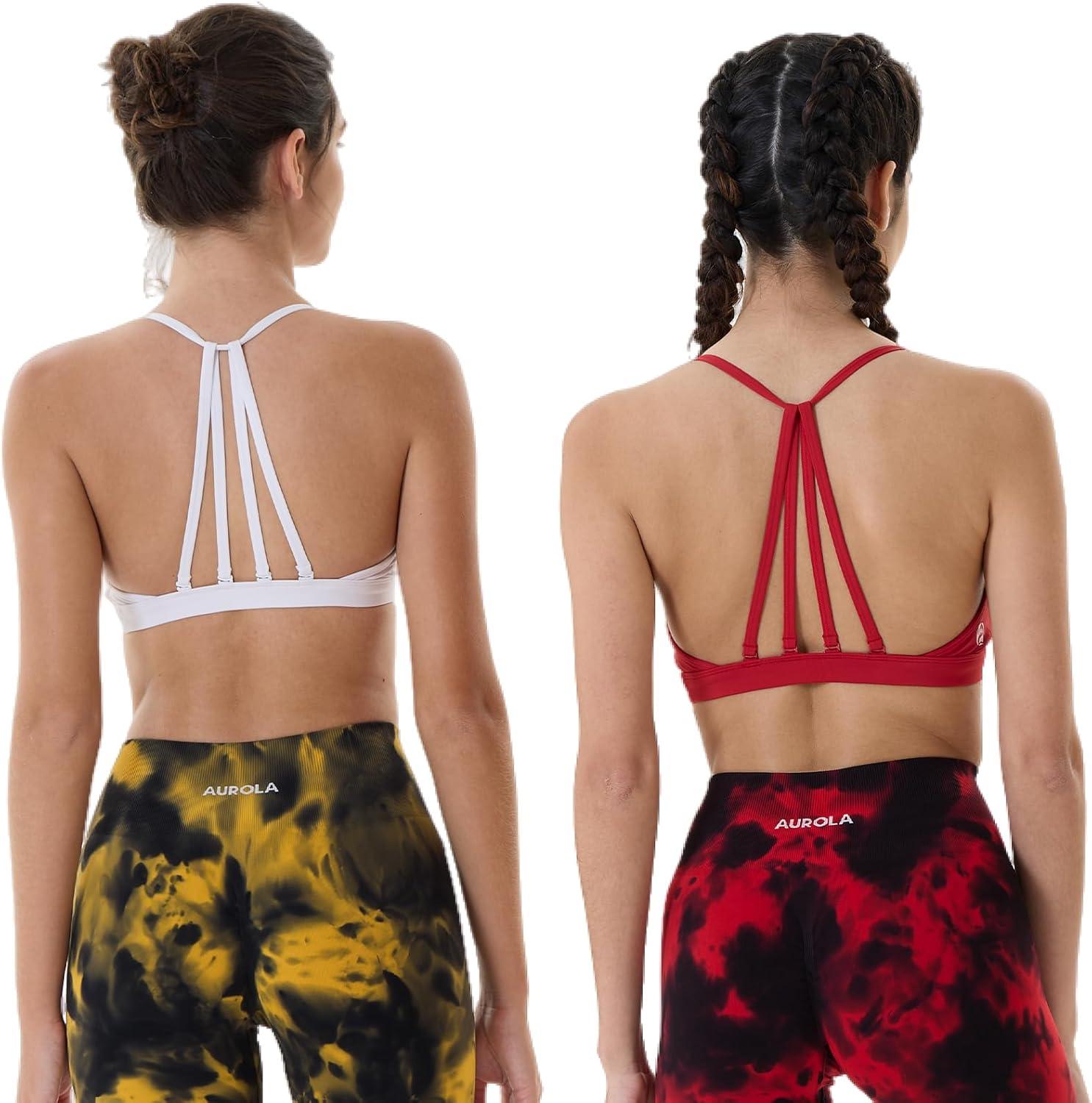 AUROLA Mercury Workout Sports Bras Women Athletic Removable Padded Backless Strapy Minimal Crop Top(Mercury-solid-chili Red)