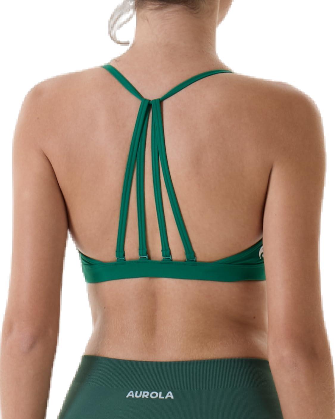AUROLA Mercury Workout Sports Bras Women Athletic Removable Padded Backless Strapy Minimal Crop Top(Mercury-solid-green Jacket)