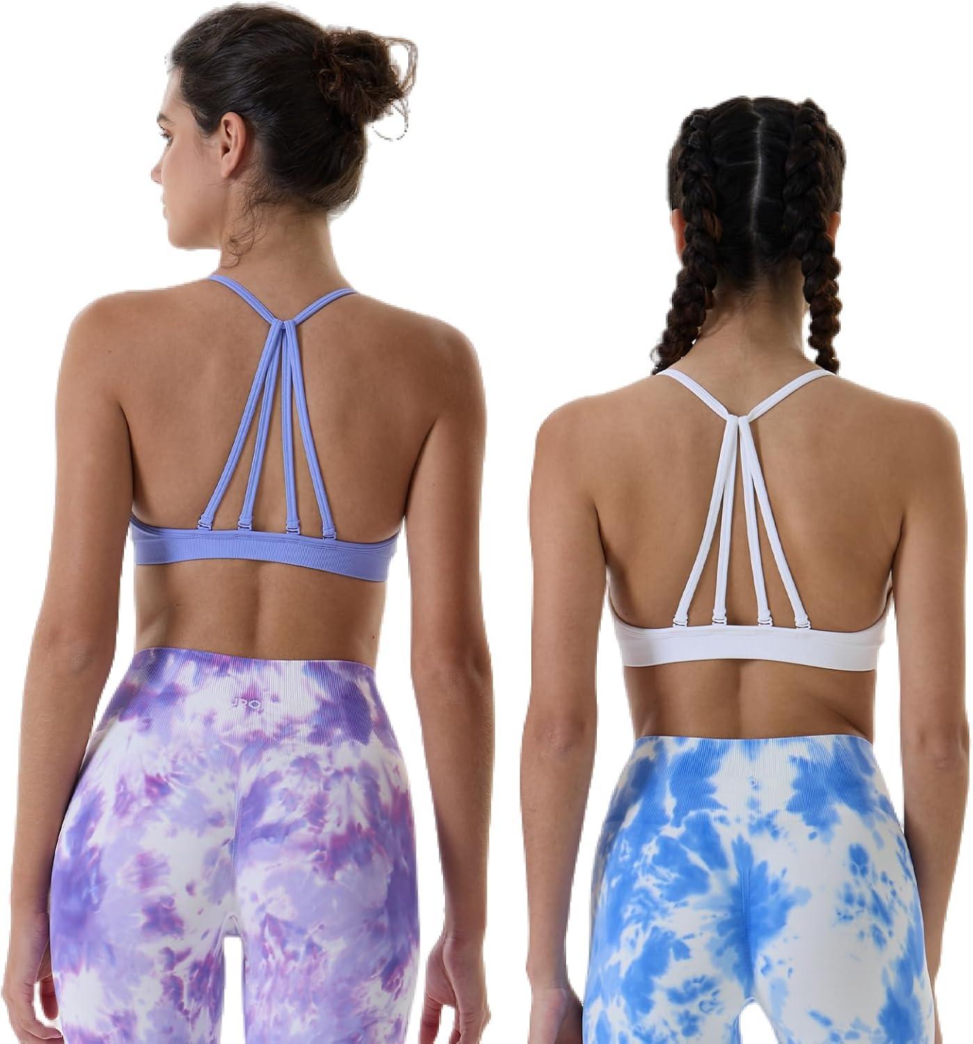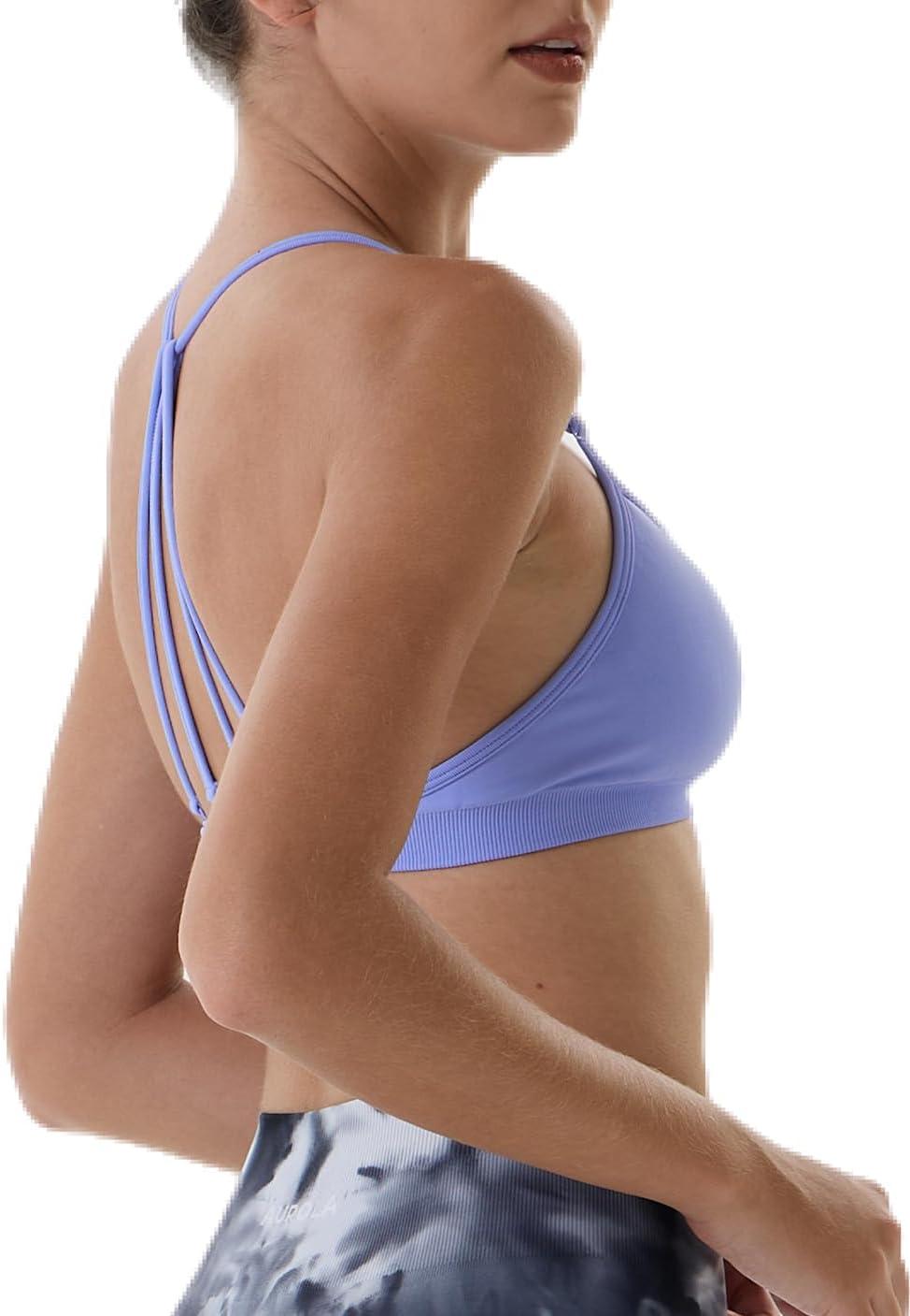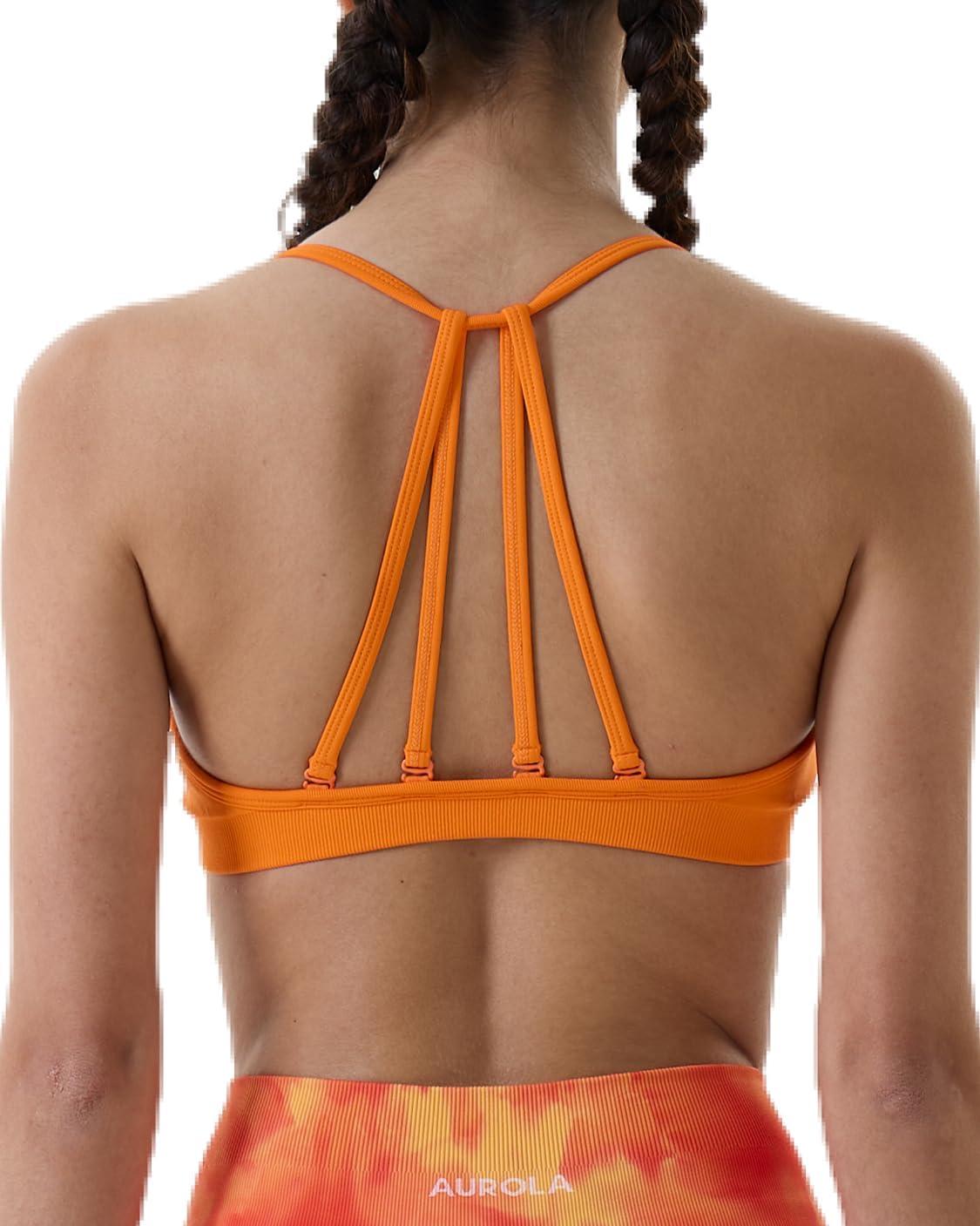 AUROLA Mercury Workout Sports Bras Women Athletic Removable Padded Backless Strapy Minimal Crop Top(Pack (Black+jacaranda+persimmon Orange))