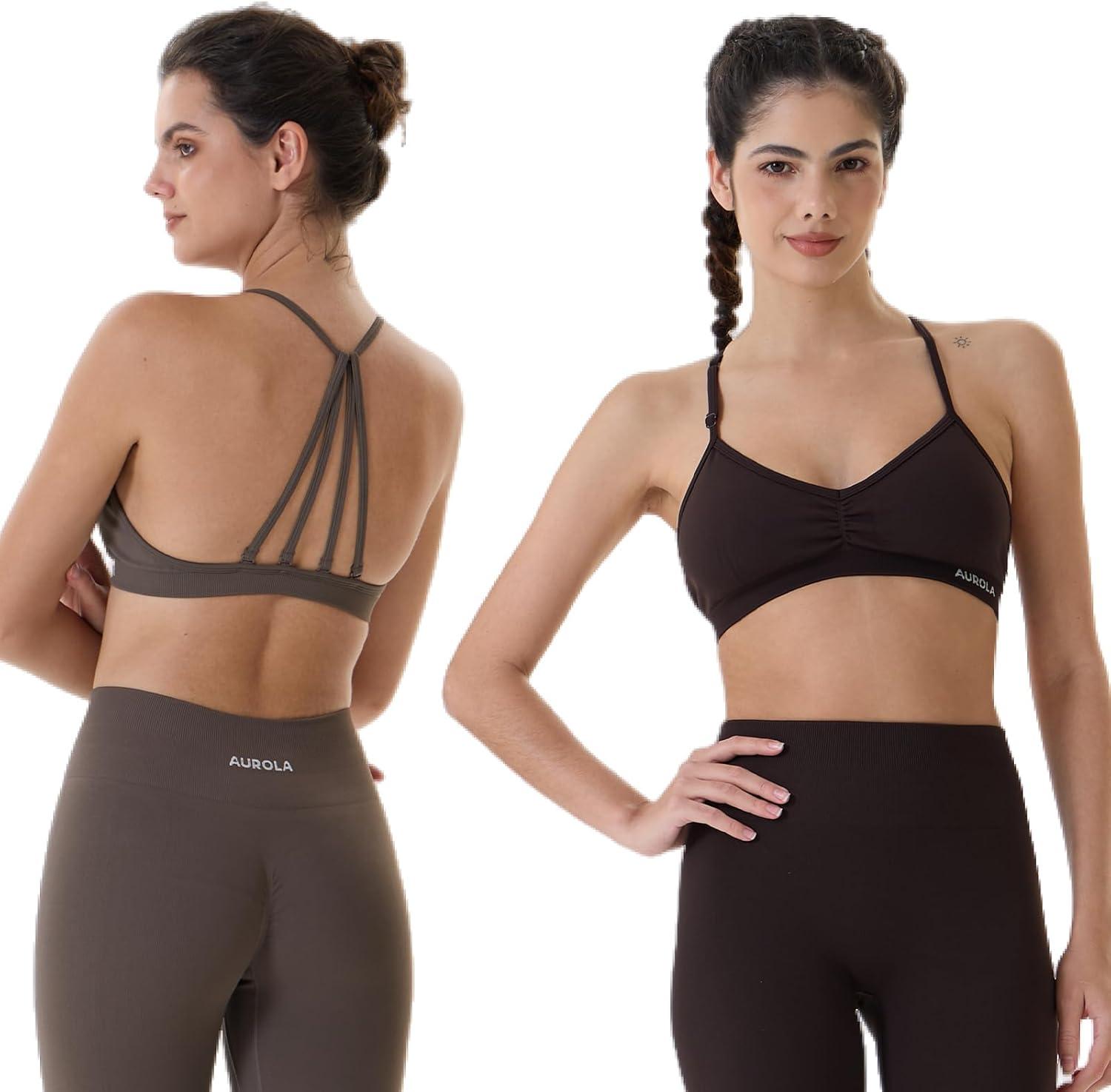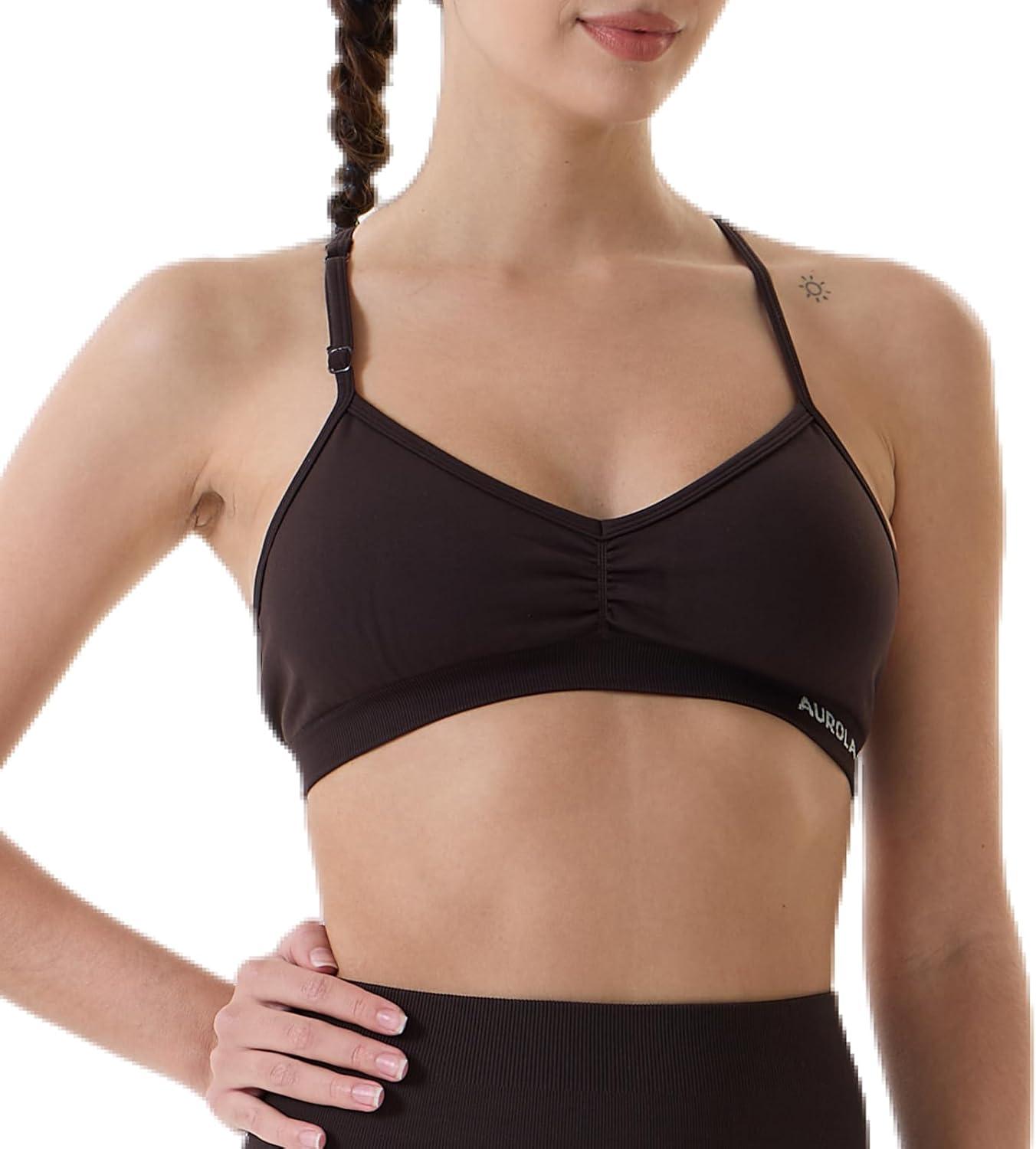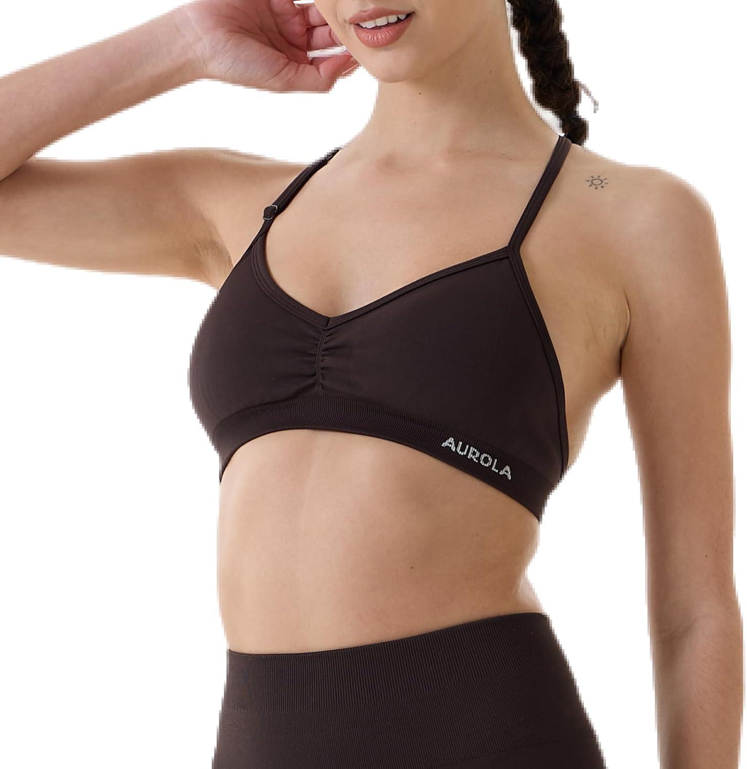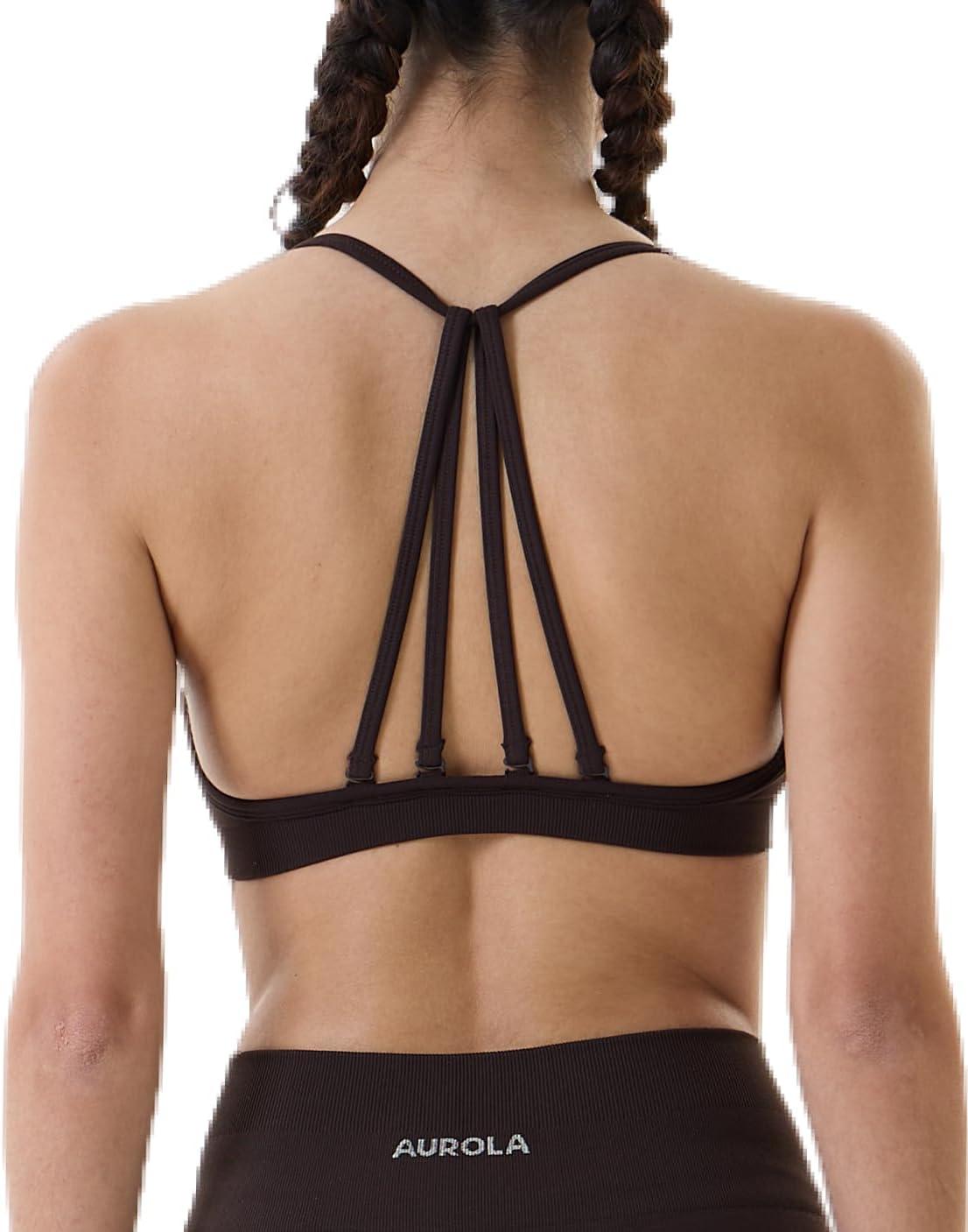 AUROLA Mercury Workout Sports Bras Women Athletic Removable Padded Backless Strapy Minimal Crop Top(Seamless-chocolate Torte)