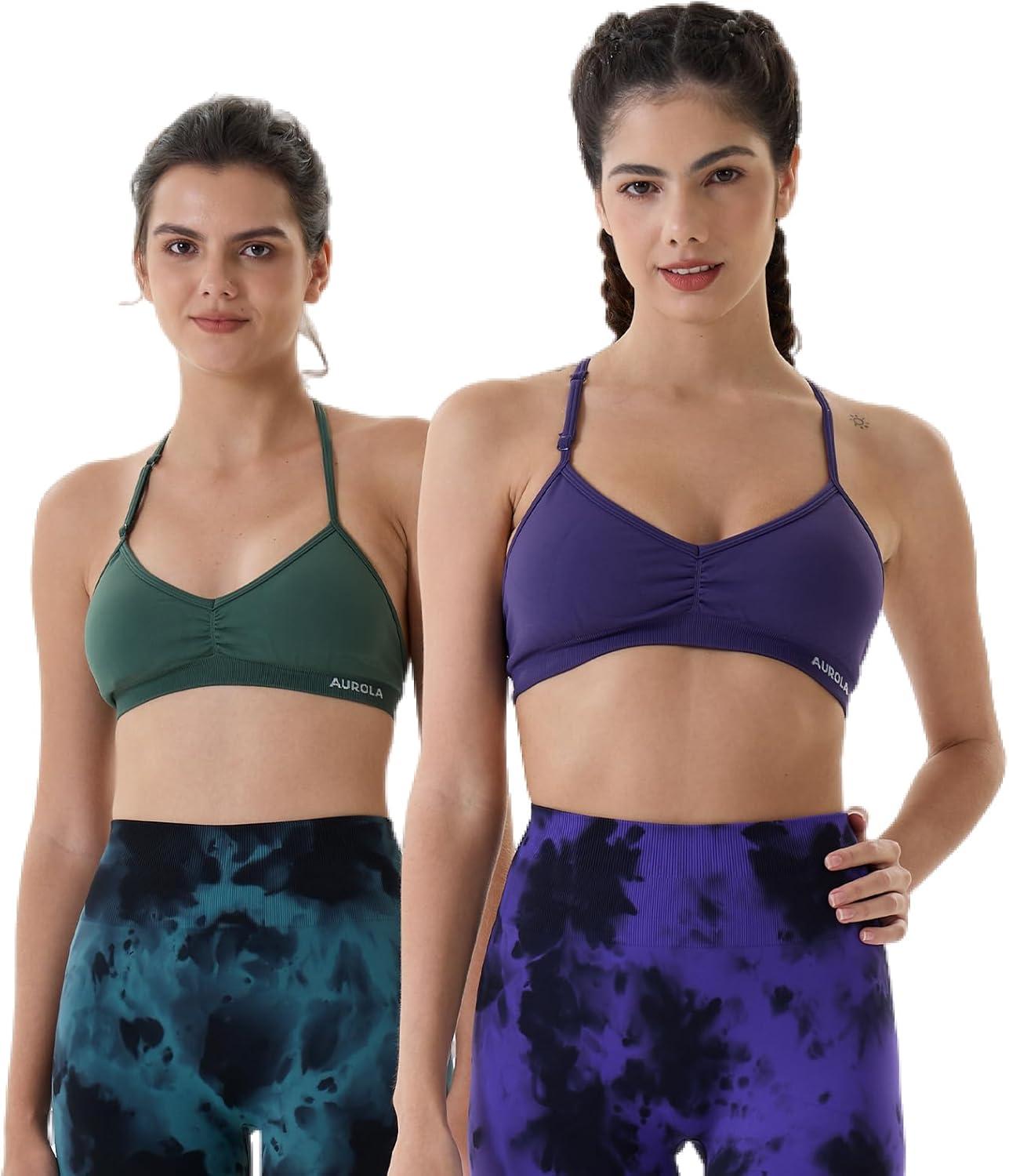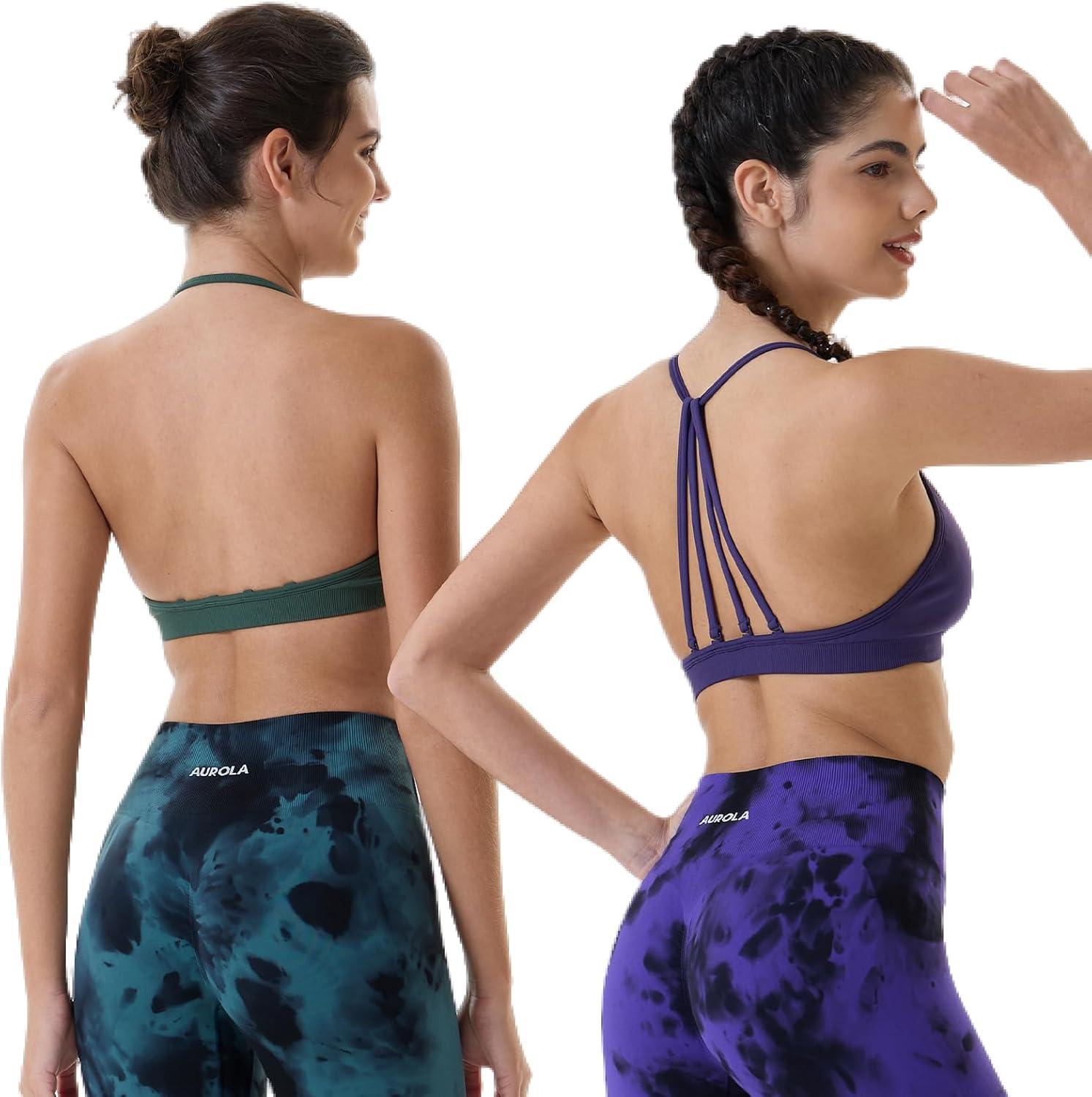 AUROLA Mercury Workout Sports Bras Women Athletic Removable Padded Backless Strapy Minimal Crop Top(Seamless-eden Green)