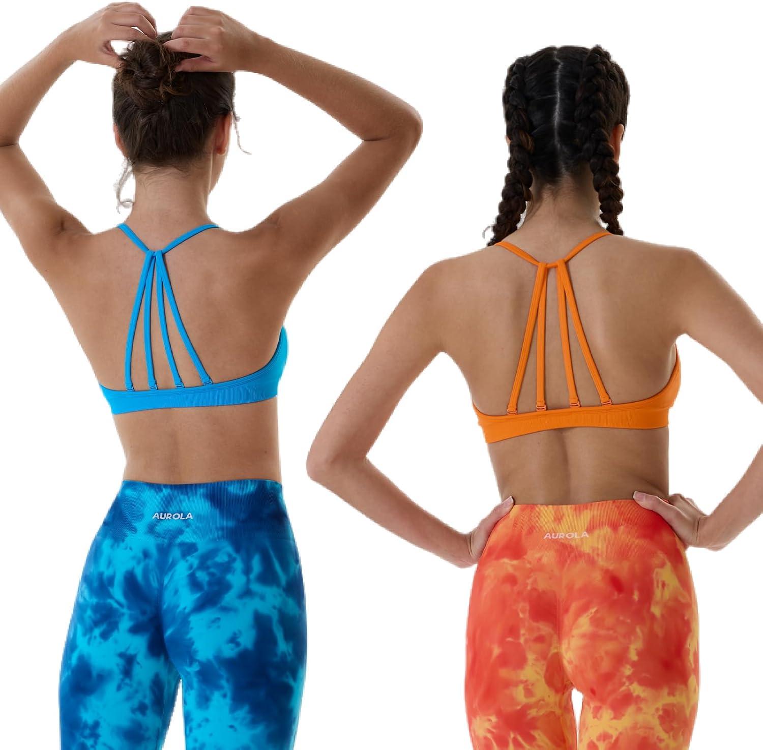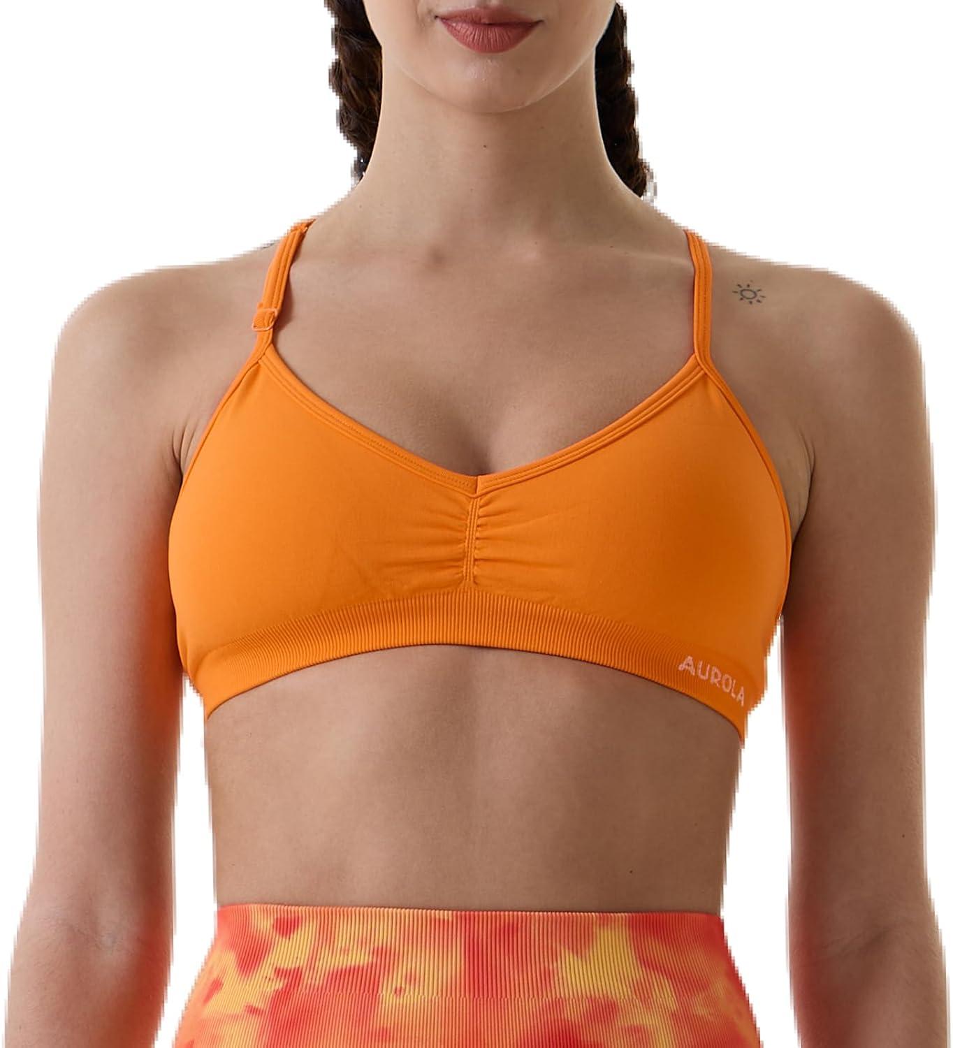 AUROLA Mercury Workout Sports Bras Women Athletic Removable Padded Backless Strapy Minimal Crop Top(Seamless- Persimmon Orange)