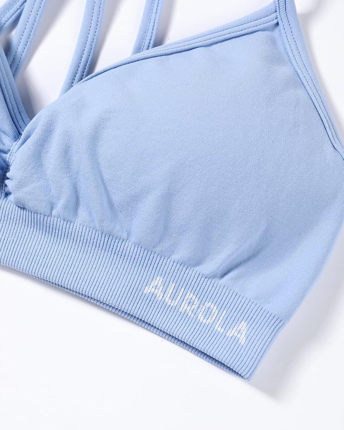 AUROLA Mercury Workout Sports Bras Women Athletic Removable Padded Backless Strapy Minimal Crop Top(Serenity Blue)