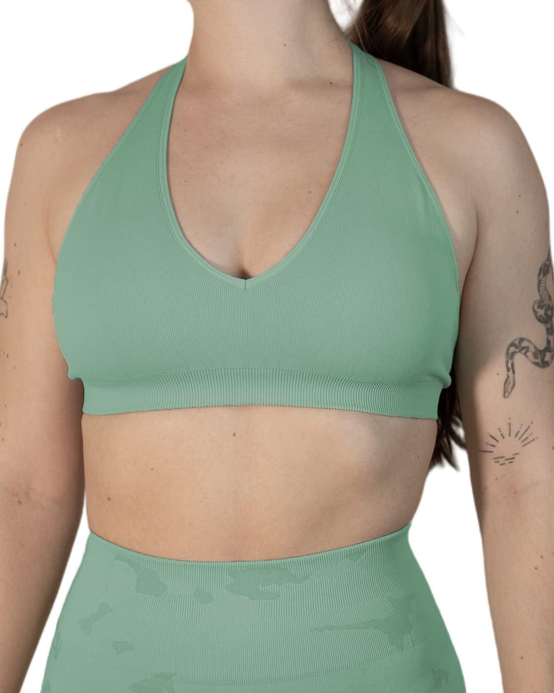 AUROLA Moon Seamless Halter Backless Sport Bra for Women Adjustable Padded Active Workout Gym Yoga Crop Tank Top(Granite Green)