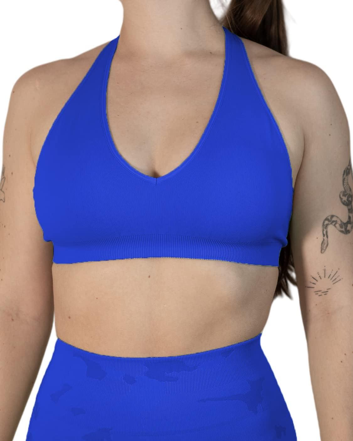 AUROLA Moon Seamless Halter Backless Sport Bra for Women Adjustable Padded Active Workout Gym Yoga Crop Tank Top(Klein Blue)