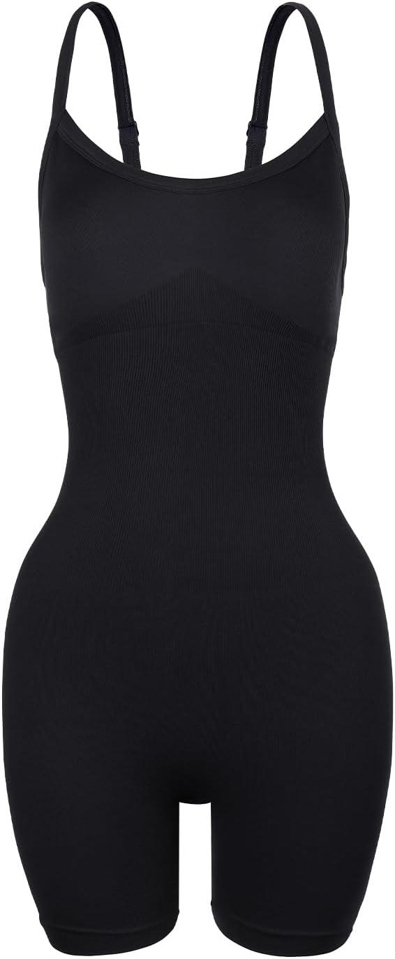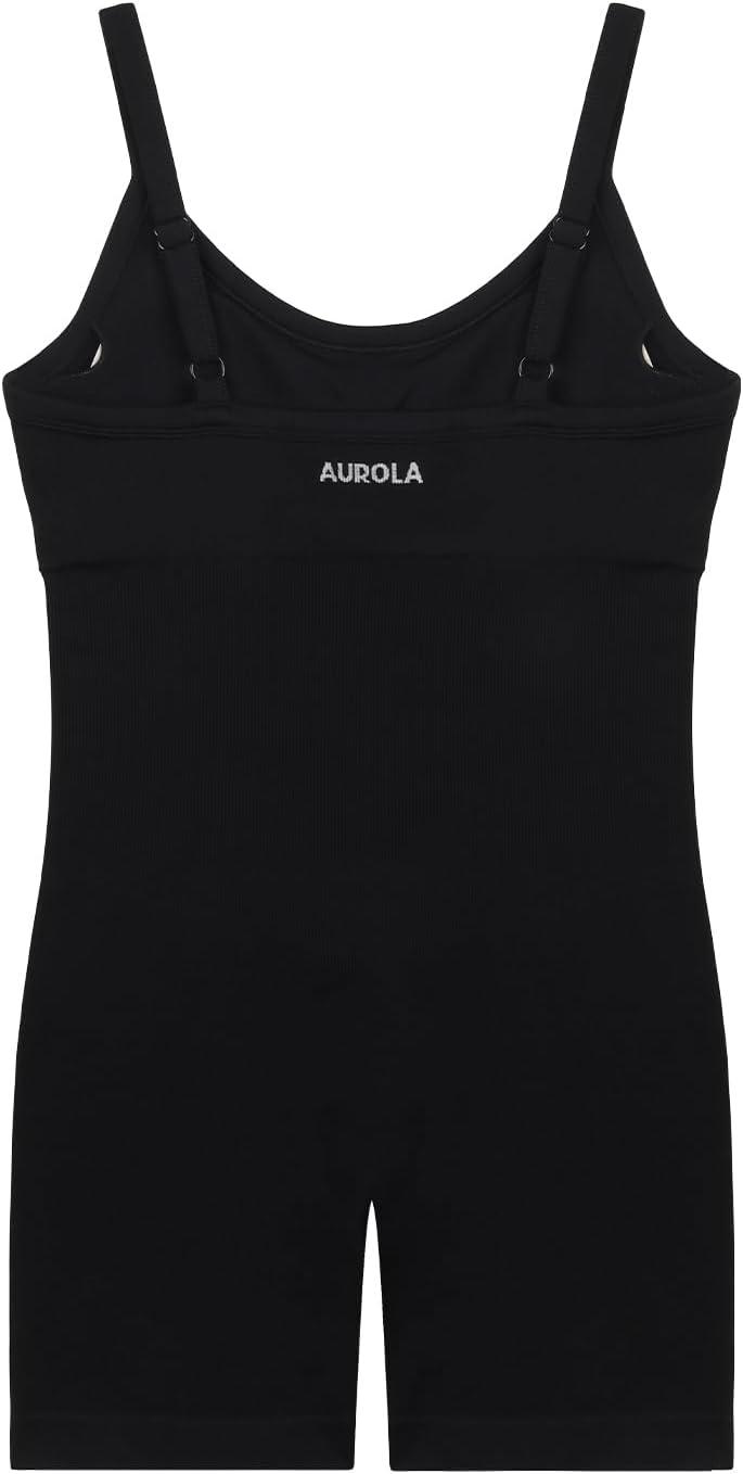 AUROLA Power Romper for Women Workout Yoga Gym Seamless One Piece Racerback Jumpsuit Tummy Control Padded Sports Bra(#1 Black)