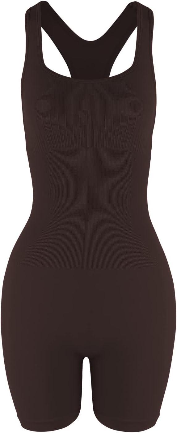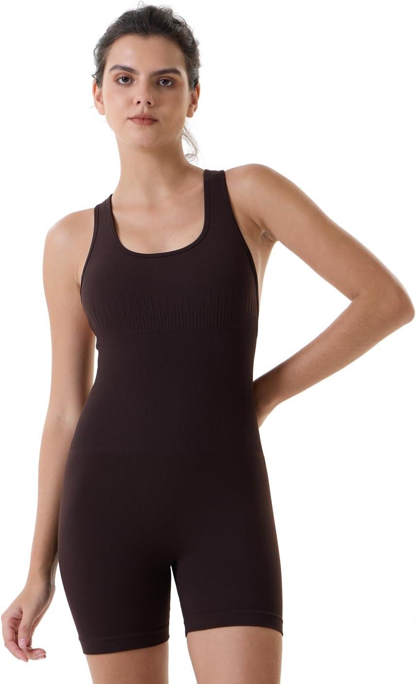 AUROLA Power Romper for Women Workout Yoga Gym Seamless One Piece Racerback Jumpsuit Tummy Control Padded Sports Bra(Coffee Bean)