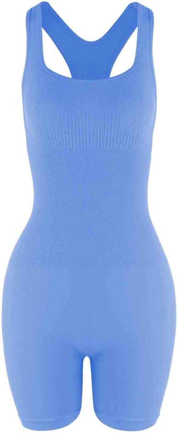 AUROLA Power Romper for Women Workout Yoga Gym Seamless One Piece Racerback Jumpsuit Tummy Control Padded Sports Bra(Serenity Blue)
