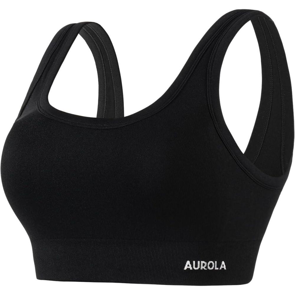 AUROLA Power Sports Bras for Women – Push Up Workout Bra Square Neck Yoga Bra Padded Low Impact Gym Bra Crop Top(Black)