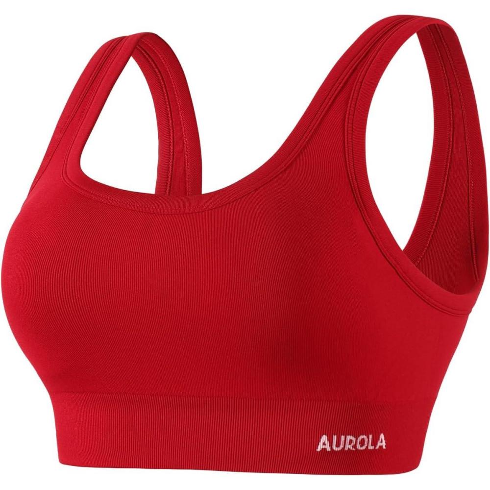 AUROLA Power Sports Bras for Women – Push Up Workout Bra Square Neck Yoga Bra Padded Low Impact Gym Bra Crop Top(Flame Red)