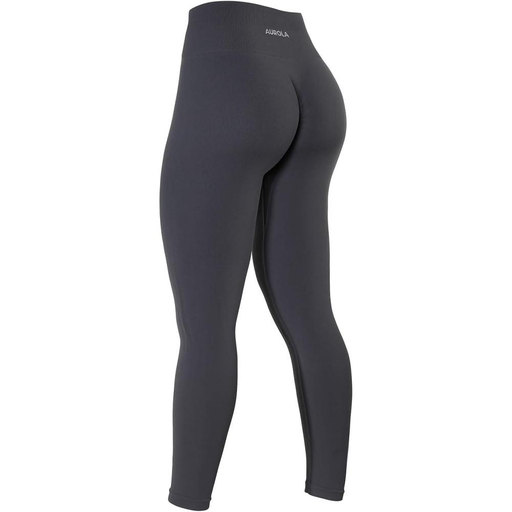 AUROLA Power Workout Leggings for Women Tummy Control Squat Proof Ribbed Thick Seamless Scrunch Active Pants(Dark Grey)