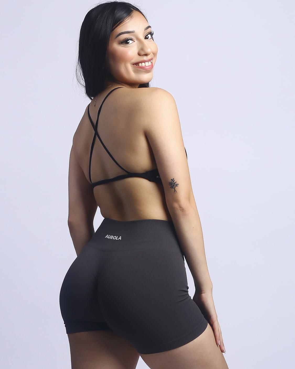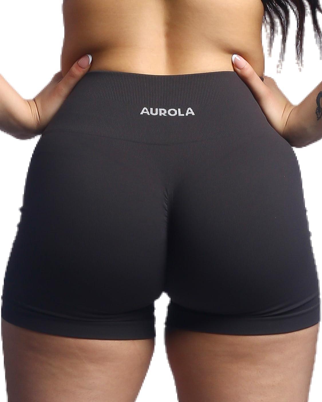AUROLA Power Workout Shorts for Women Tummy Control Squat Proof Ribbed Thick Seamless Scrunch Active Short(Coal Grey)