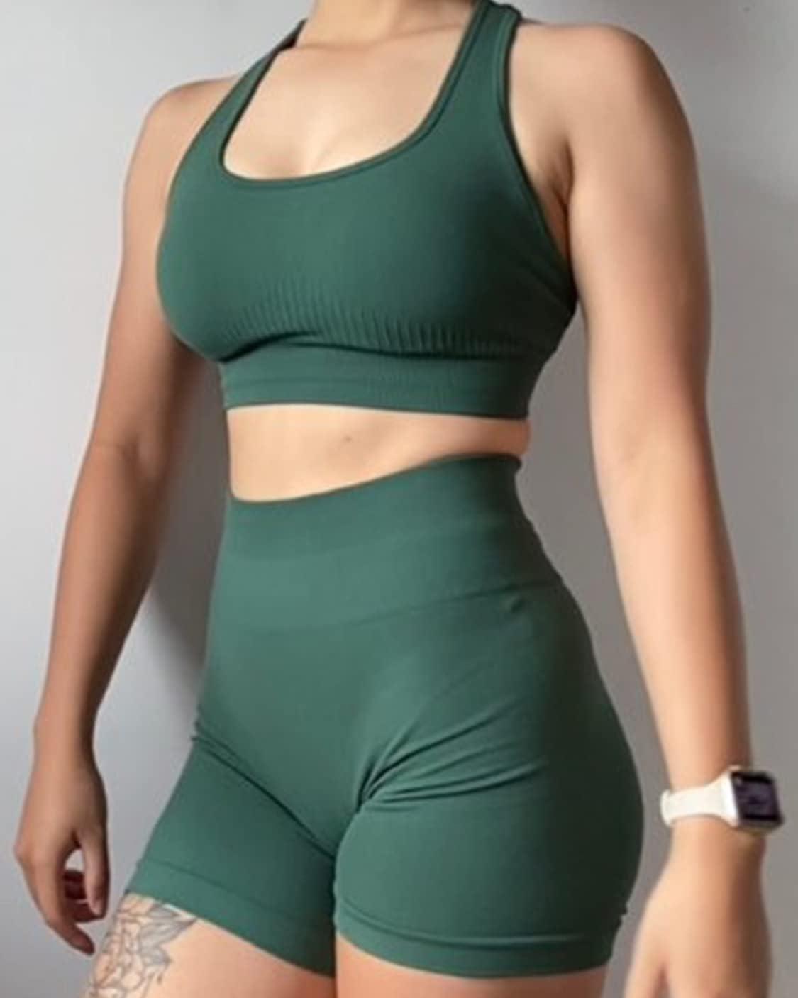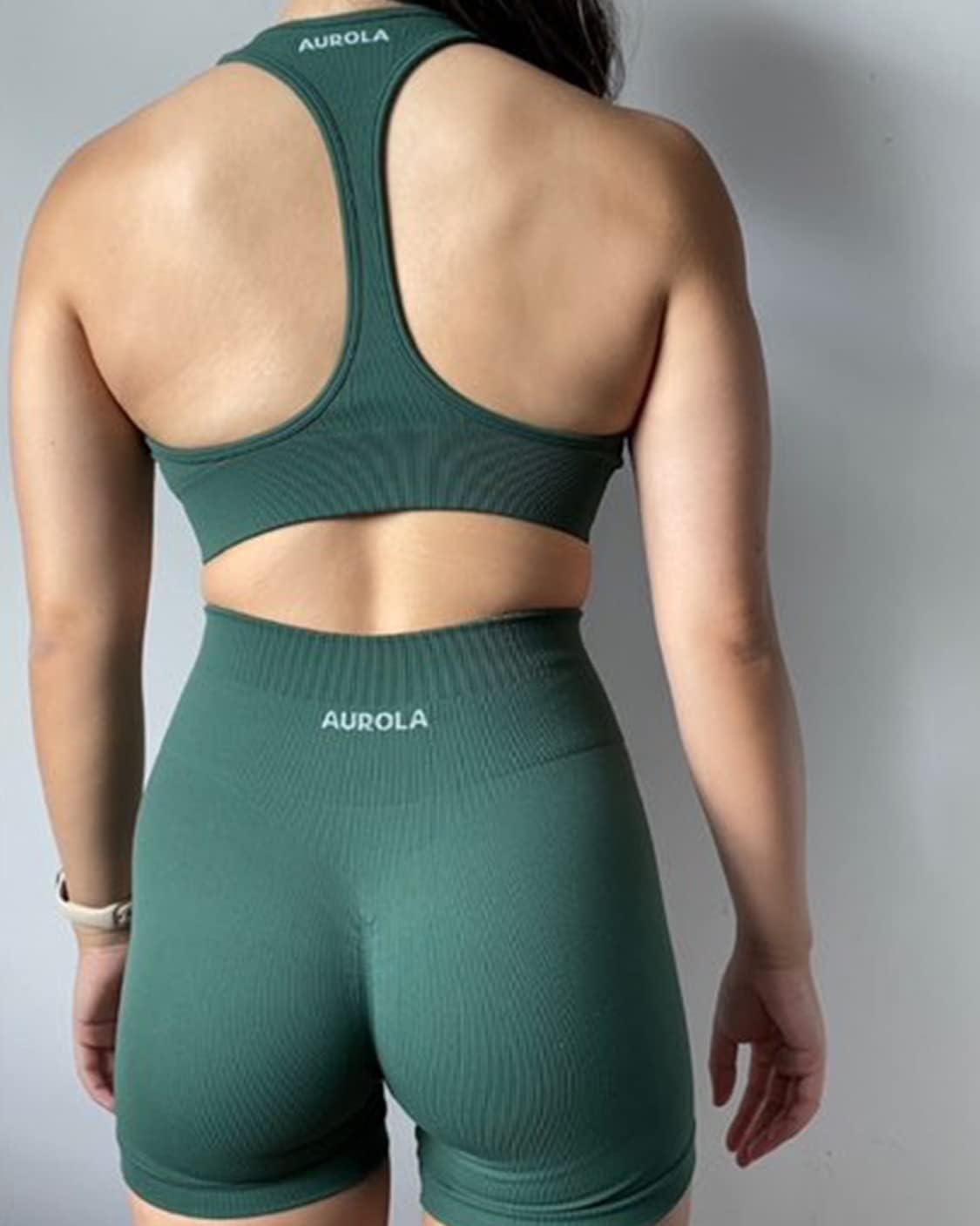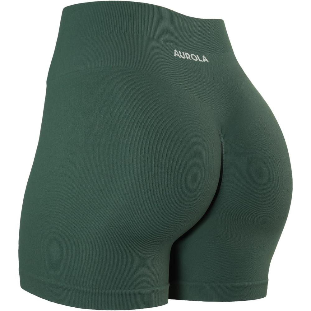 AUROLA Power Workout Shorts for Women Tummy Control Squat Proof Ribbed Thick Seamless Scrunch Active Short(Eden Green)