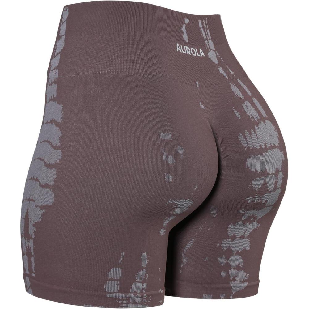 AUROLA Serpent Seamless Scrunch Workout Shorts for Women,Tummy Control Squat Proof Ribbed Thick Active Gym Short(Serpent- Deep Taupe)