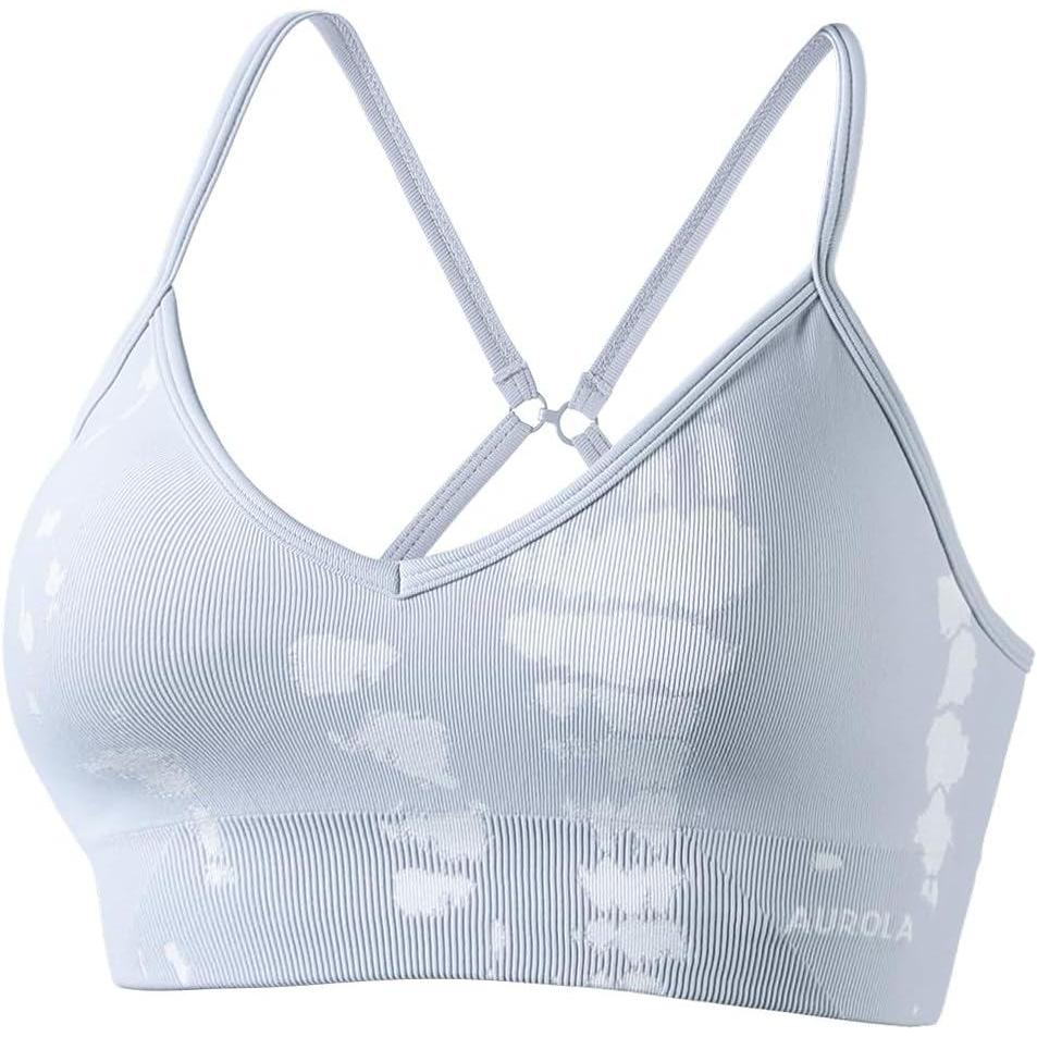 AUROLA Serpent Seamless Sports Bras for Women,Backless Padded Strappy Workout Gym Yoga Crop Tops(Serpent- Gray Dawn)