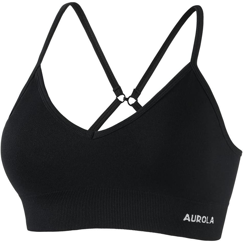 AUROLA Serpent Seamless Sports Bras for Women,Backless Padded Strappy Workout Gym Yoga Crop Tops(Solid-black)