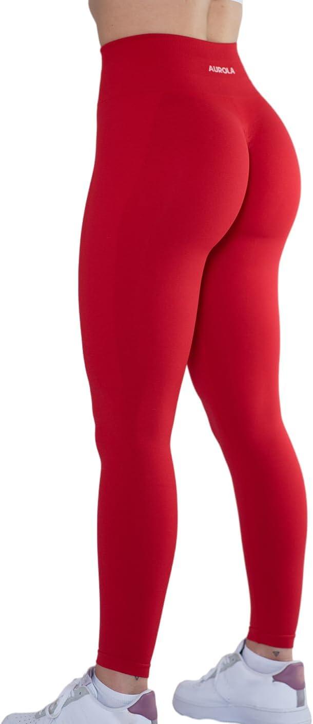 AUROLA Workout Leggings for Women Seamless Scrunch Tights Tummy Control Gym Fitness Girl Sport Active Yoga Pants(Fiery Red)