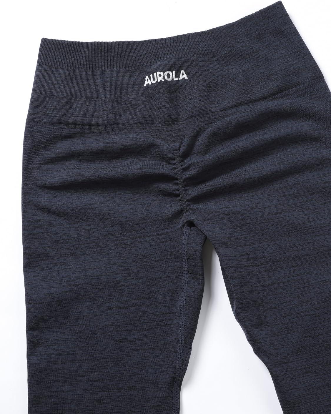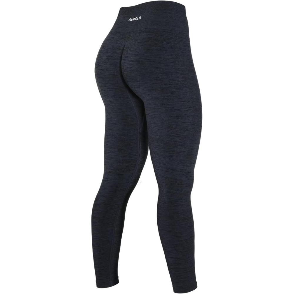 AUROLA Workout Leggings for Women Seamless Scrunch Tights Tummy Control Gym Fitness Girl Sport Active Yoga Pants(Grey Black)