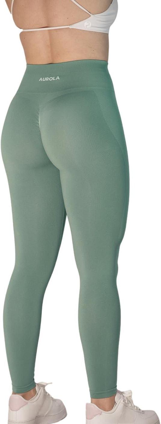 AUROLA Workout Leggings for Women Seamless Scrunch Tights Tummy Control Gym Fitness Girl Sport Active Yoga Pants(Iceberg Green)