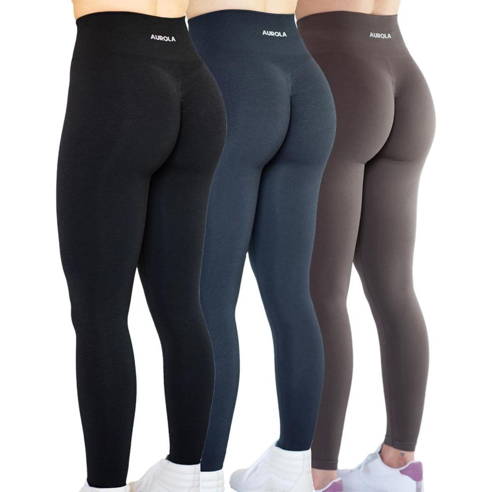 AUROLA Workout Leggings for Women Seamless Scrunch Tights Tummy Control Gym Fitness Girl Sport Active Yoga Pants(Pack (Black+black Marl+chestnut Brown))