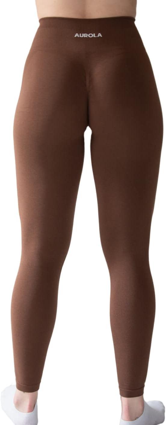 AUROLA Workout Leggings for Women Seamless Scrunch Tights Tummy Control Gym Fitness Girl Sport Active Yoga Pants(Set (Chestnut Brown+dandelion Brown))